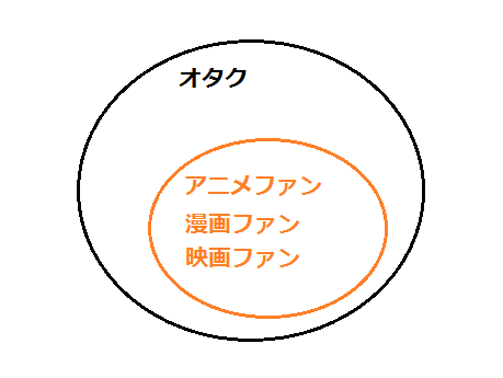 それらは、オタクに包括された存在で、次のような関係になります。愛好家∈オタク。