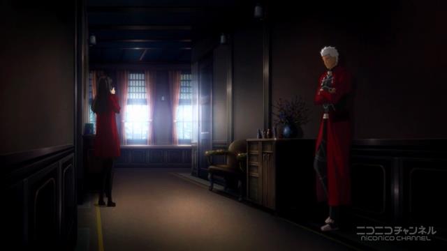 そんで、違和を覚えたのがこのシーン。まあイマジナリーラインの問題なんでしょうか。凛とアーチャーの位置関係を示すのに、この一連のカットはちょっとダメな気がする。