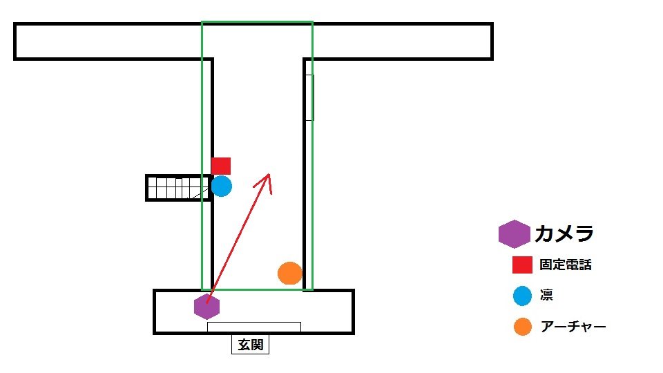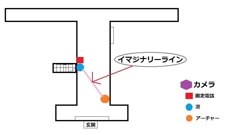 このシーンを俯瞰で見ると、多分こんな感じ。(※凛の左は階段)