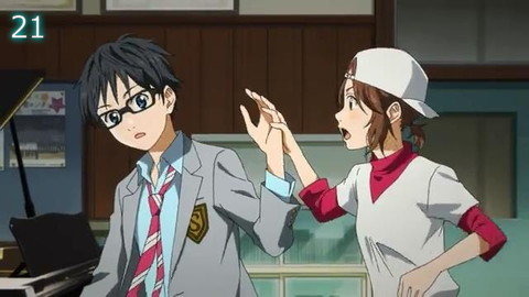 結局は、「有馬公生の手指の貴重性」というものを示すために、この一連のシークエンスが存在しています。有馬公生の脳みそなんてのは二の次であり、その貴重な手指だけは死んでも守らねばならない、ということをここでは伝えているように感じます。 じっさい、有馬公生の手指は貴重なものであり、ピアノクラシックという題材の下では、至ってシンプルな演出だと思います。