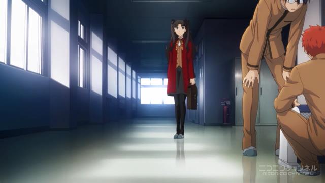 47分と約2話分あるが、殆どは凛による「fate」舞台の説明である。「fate/zero」との繋がりを意識しているようにも感じる。アバンでは、凛パパ(遠坂時臣)との回想を。Aパートでは、凛の基本的な説明と、人間関係、無人の学校と、ワカメと。Bではアーチャーの登場とイチャイチャを。Cでは転換としての、ランサーの登場。Dでは、セイバーの登場での引き。順を追って見ていく。