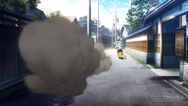 まあもう少し、コマスピード落としても(基本1コマだったので、2コマでやっても)大丈夫な気はしましたが。こういった写実的な煙はいいですね。ここは原付きの挙動も含めてよかった。